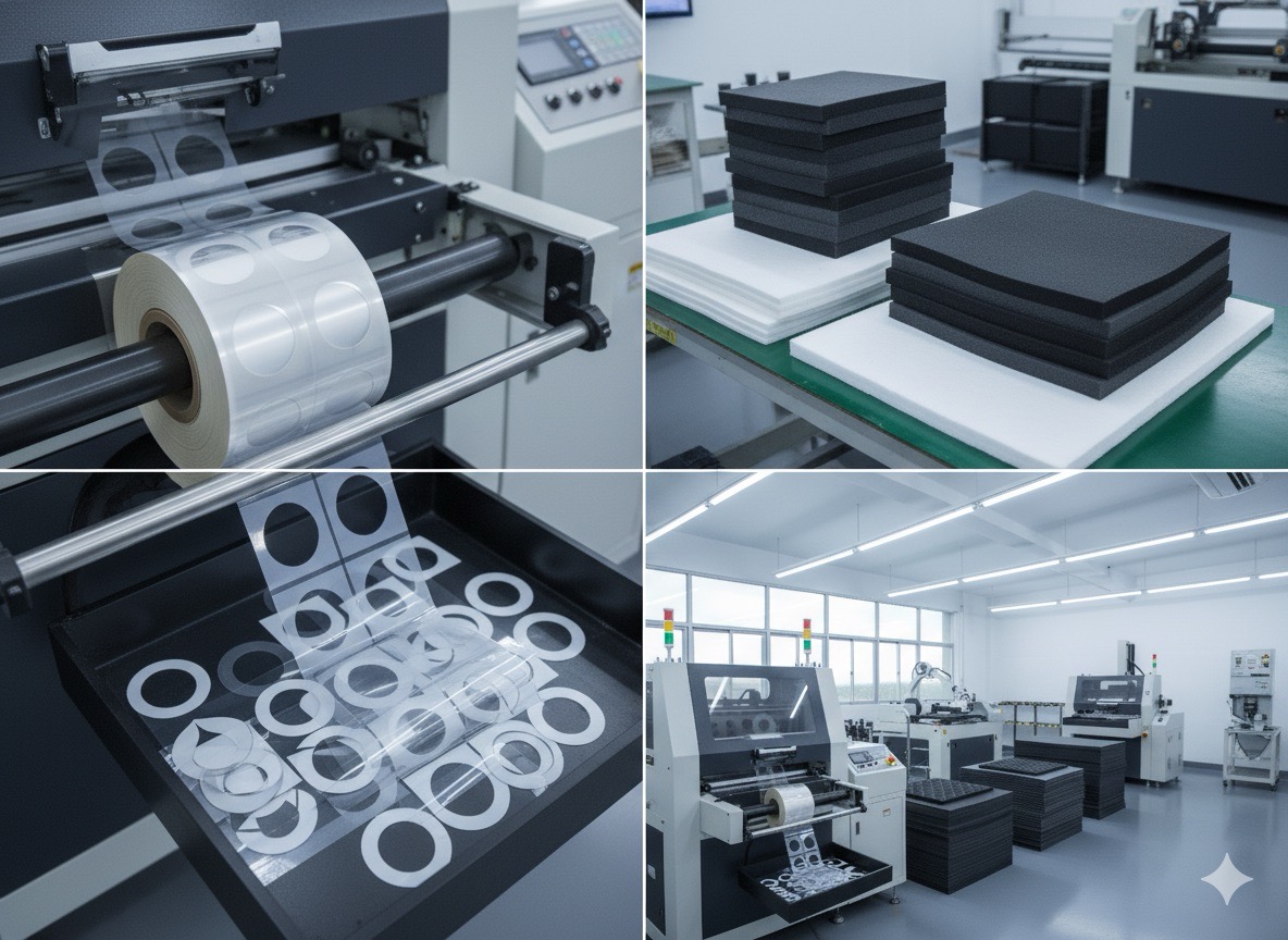 欣鴻昇企業擁有先進的模切、裁切與貼合設備,能提供從材料選型、樣品開發、試產到量產的完整解決方案。