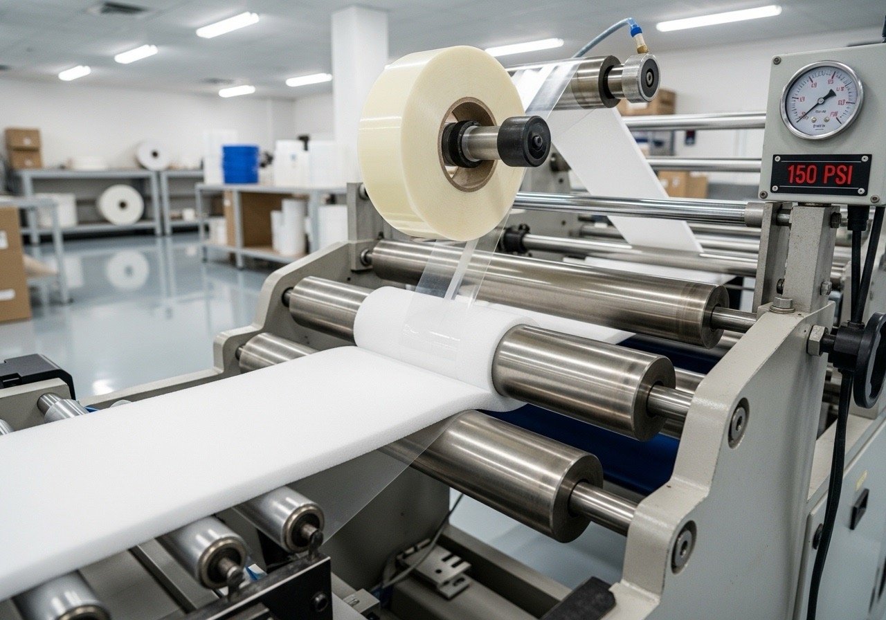 從防震泡棉、絕緣墊片到工業用不織布,每一項背膠加工都需要高度精密的壓合與模切技術。